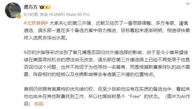 曾凡博拒回CBA,北京男篮甄选外援策略调整,拒绝续约奥莫特!