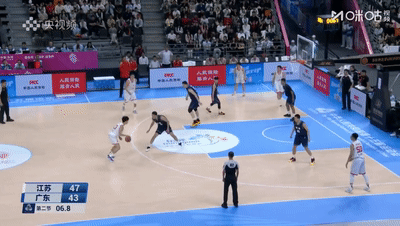 五上五下到点轮转,一组下场时广东反而28-32落后江苏4分,二阵容徐杰贺希宁带队,后半段广东重新加强了全场紧逼,也有意减少了外线投射,徐杰连得4分后终于飚进广东队第4记三分(但也送出2次传球失误),广东队进攻有所好转(其实只有徐杰在得分),江苏也完全跟得上火力,只有10人轮转的江苏,靠着锲而不舍的砍柴战术和扎实的转换快攻以及二次进攻,外加一点点运气,半场战罢,江苏50-43领先广东!
