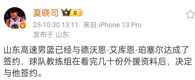 正式签约!珀塞尔加盟山东男篮,邱彪出其不意,冲击CBA前四