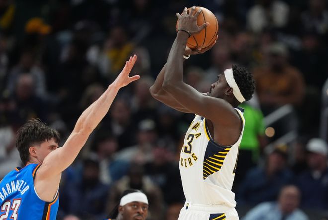 步行者:西亚卡姆3记三分32分15篮板,马瑟林3记三分36分11篮板6犯规,谢泼德15分8篮板6犯规,托平20分,沃克13分。