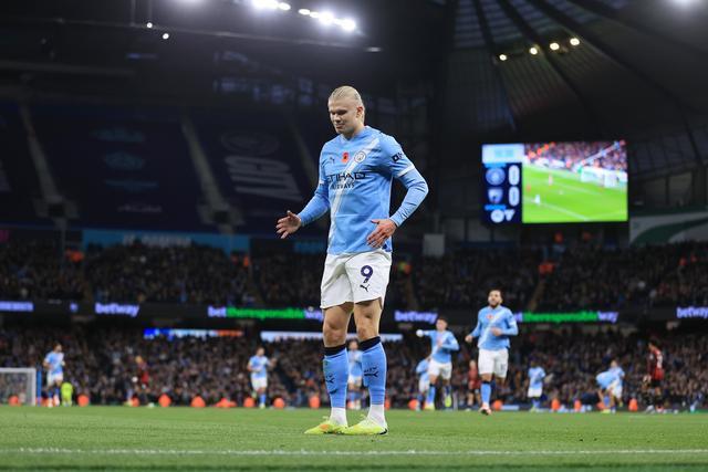 英超第10轮主场迎战伯恩茅斯的比赛中,哈兰德在第33分钟的进球帮助曼城取得2-1的领先。