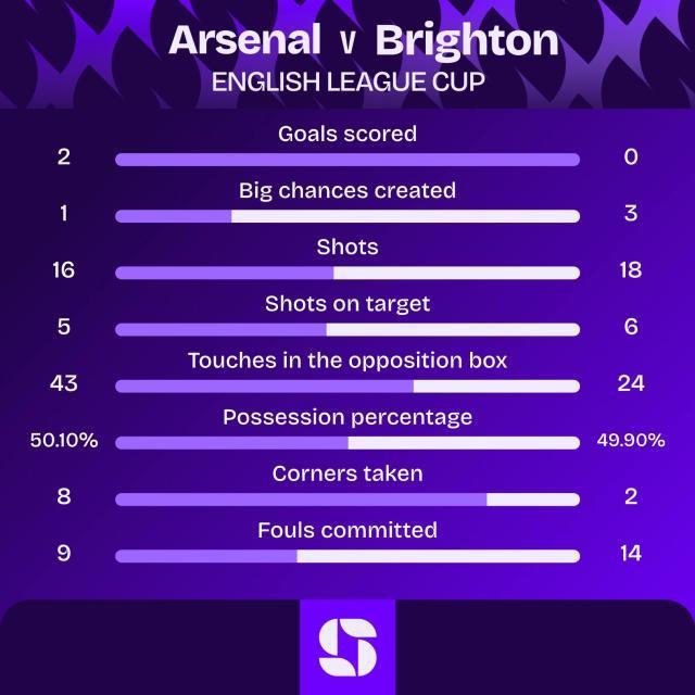 阿森纳首发:凯帕/本·怀特(70'于里恩·廷伯),克里斯蒂安·莫斯克拉,因卡皮耶(70'加布里埃尔·马加良斯),刘易斯-斯凯利/恩瓦内里,内尔高,梅里诺/道曼(71'萨卡),哈里曼-安努斯(77'赖斯),埃泽(83'特罗萨尔)